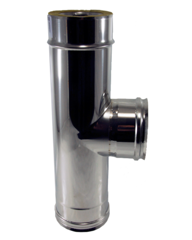 Te a 90º de doble pared INOX 316L – 304 con diámetros de 80 a 300 mm. para chimenea modular metálica.